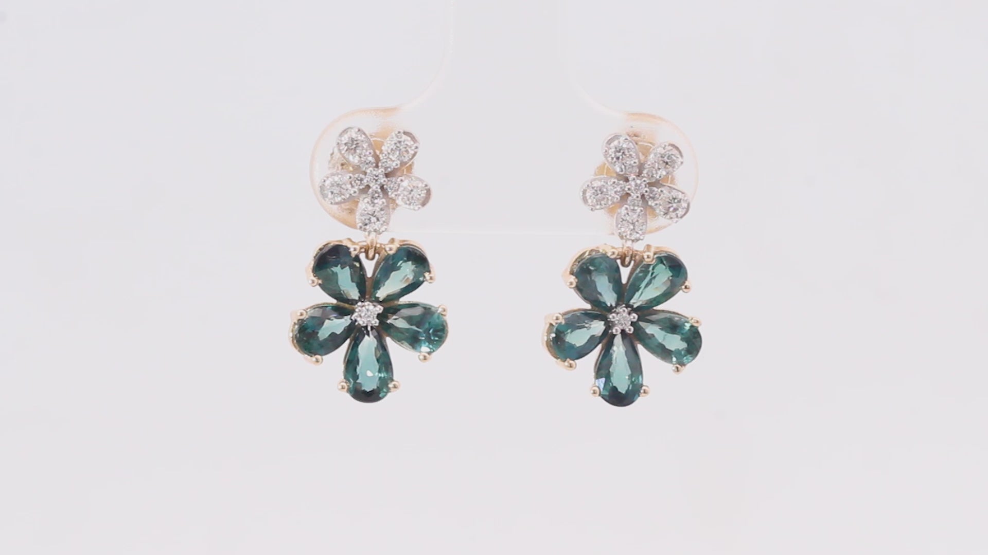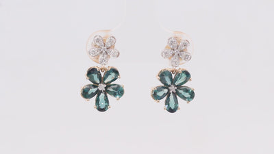 Diamond Sapphire Floral Drop Earrings